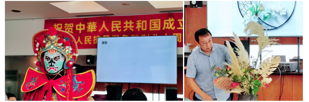 首先登場的是元北京京劇院全國京劇大賽梅花獎(jiǎng)獲得者、京劇表演藝術(shù)家楊俊苓表演的“變臉”藝術(shù),只見她抖袖回眸中赤橙青紫、變幻莫測,精彩地將國粹藝術(shù)展現(xiàn)在了觀眾面前,瞬間贏得了滿堂喝彩。隨后由歌唱家、音樂博士孟繁杰為大家?guī)砹烁枨段液臀业淖鎳?,她專業(yè)而美妙的歌聲將海外游子的心激蕩起來與祖國脈搏同頻,歌聲起落處,歌者和聽眾的歌聲交織回蕩在了一起。來自京都大學(xué)的法學(xué)博士金振也為大家獻(xiàn)上周華健的《朋友》,溫暖的歌詞和溫馨的曲調(diào)將天涯萍聚在一起的參會(huì)者們緊緊連系在了一起。華僑總會(huì)錢江麗子會(huì)長其后獻(xiàn)上了蕩氣回腸的《英雄兒女》,她近乎專業(yè)水準(zhǔn)的歌聲牽動(dòng)了大家的心緒,令人想起無數(shù)為新中國誕生不惜付出生命代價(jià)的英雄前輩。想到今天祖國的繁榮盛世,到會(huì)者無不深感今天中國之來之不易和值得珍惜。