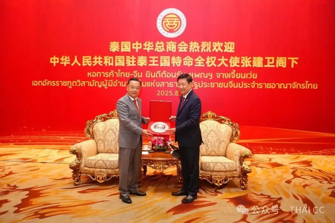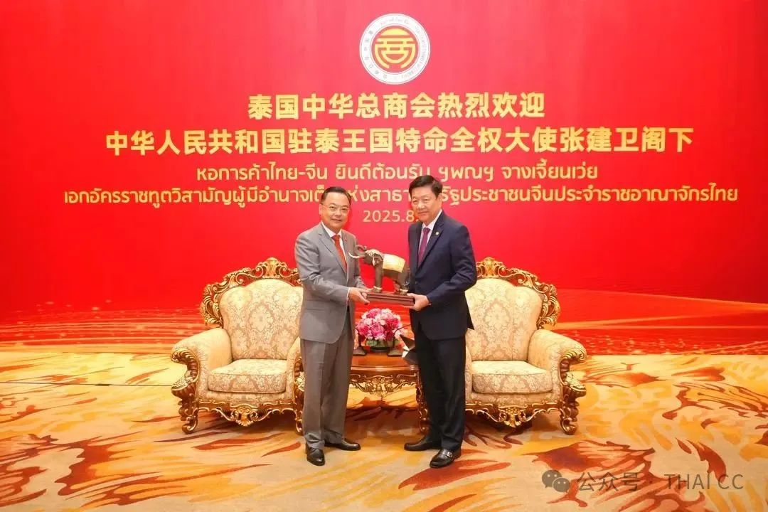 2025年8月7日上午,中華人民共和國駐泰王國特命全權(quán)大使張建衛(wèi)閣下率中國駐泰國大使館公參兼總領(lǐng)事潘瑾、公參吳健、一等秘書兼領(lǐng)事柳少澤、秘書孫雨晴、大使秘書李世星等,蒞臨訪問泰國中華總商會(huì),受到泰國中華總商會(huì)主席林楚欽,永遠(yuǎn)榮譽(yù)主席劉錦庭,副主席李桂雄、陳錫源、何克家、蔣應(yīng)初、劉秉青、蕭漢銘、歐先梓、劉漢城,資深常務(wù)會(huì)董黃大慶、劉樹光、林盛、蕭 煒、蔡民強(qiáng)、馬燦利、張永青,秘書長林嘉南,常務(wù)副秘書長陳卓欽、林圣浩、廖綿才、陳鎮(zhèn)盛、陳運(yùn)金、陳鴻銳,副秘書長吳和榮、蕭鴻洽、張揚(yáng)、李嘉淳、林千淘,財(cái)務(wù)部主任羅鐵英,商務(wù)部主任鄺錦榮,外事部主任李大成,促進(jìn)旅游部主任許鎮(zhèn)南,戰(zhàn)略創(chuàng)新部主任徐永添,文化教育部主任徐位合,福利慈善部主任周桂揚(yáng),公共交流部主任林慰民,改革發(fā)展部主任陳金山,經(jīng)貿(mào)投資部主任何成鵬,新聞宣傳部主任蔡孝興,中國事務(wù)部主任趙春森,康樂部主任張蓬財(cái),青年部主任林如金等的熱烈歡迎。