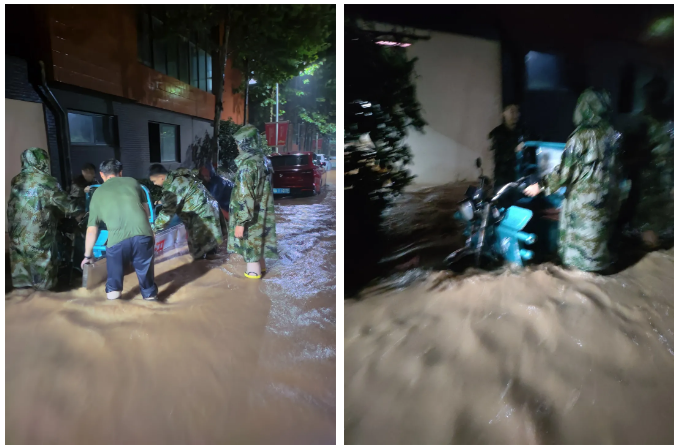 為守護(hù)園區(qū)企業(yè)資產(chǎn),物業(yè)同事用人墻和擋板維護(hù)客戶地下室貨物安全,即便有人因水勢(shì)兇猛而受傷,但是他依舊堅(jiān)持留在現(xiàn)場(chǎng)堅(jiān)守,“水流太急了,我多堅(jiān)持一會(huì)兒這些貨就少損失一些”。
