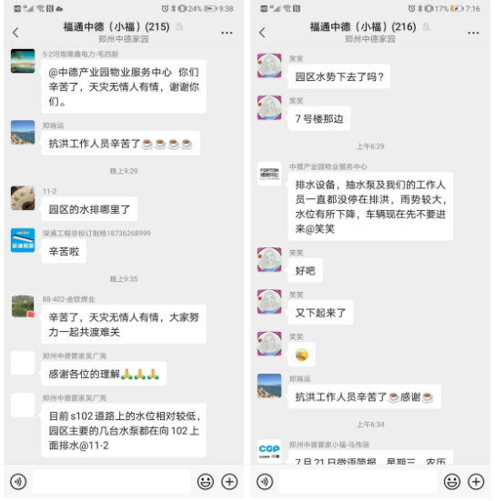 3天2夜,自暴雨開始,鄭州中德產(chǎn)業(yè)園的物業(yè)、置業(yè)員工便開始了徹夜不眠的日子,他們冒雨堅(jiān)守在抗洪一線。即便大家的衣服都是濕了干,干了又濕,但是沒有一個(gè)人退后。
