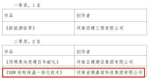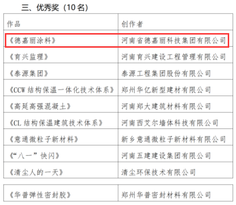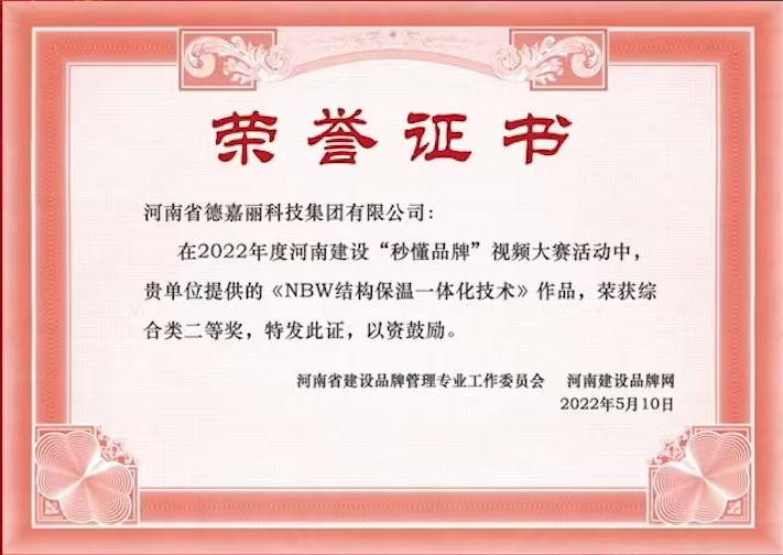 其中,我會副會長單位河南德嘉麗科技集團(tuán)有限公司的《NBW結(jié)構(gòu)保溫一體化技術(shù)》視頻榮獲本屆視頻大賽綜合獎二等獎、《德嘉麗涂料》視頻榮獲本屆視頻大賽優(yōu)秀獎。兩部作品同時(shí)入圍得獎,可喜可賀。