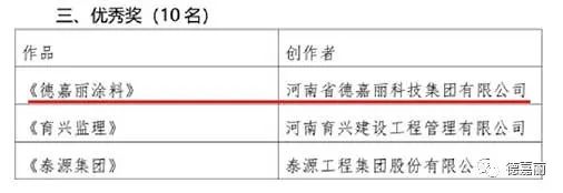 《德嘉麗涂料》獲得優(yōu)秀獎