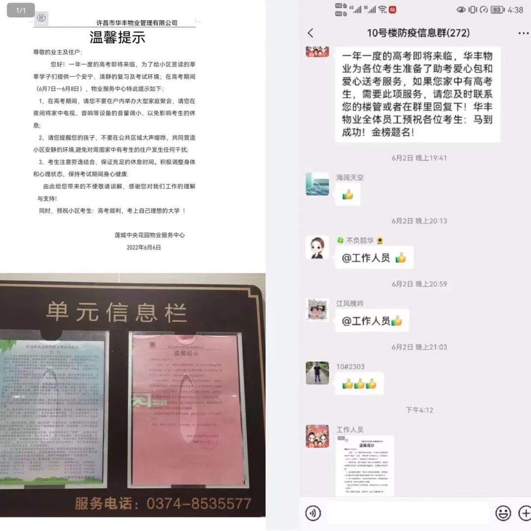 駿景地產(chǎn)貼心考慮業(yè)主需求,對家有考生的業(yè)主進(jìn)行走訪,做好跟進(jìn)服務(wù),為參加高考的業(yè)主子女,送上高考愛心加油包(包含文具袋、 繪圖套尺、中性筆、涂卡2B自動鉛筆、筆芯、橡皮、風(fēng)油精、口罩、消毒濕巾、衛(wèi)生紙),同時在小區(qū)內(nèi)懸掛高考助力條幅,為學(xué)子們加油打氣,為他們提供力所能及的園區(qū)服務(wù)。