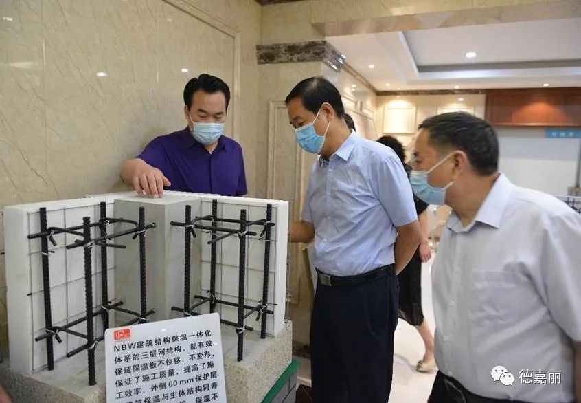 上午10:30工作評議組的各位領(lǐng)導(dǎo)到達(dá)河南省德嘉麗科技集團(tuán)有限公司進(jìn)行視察,我會副會長、德嘉麗集團(tuán)董事長李明獻(xiàn)向工作組介紹了公司內(nèi)外墻涂料、室內(nèi)裝飾板材等完善的系列產(chǎn)品體系,尤其是現(xiàn)在公司重點研發(fā)的“NBW建筑結(jié)構(gòu)保溫一體化體系”,被住建部評為國內(nèi)同行業(yè)領(lǐng)先、國際首創(chuàng)。普通混凝土澆筑,方便易操作;保溫板不位移、不變形;依圖紙設(shè)計,自動化生產(chǎn);保證保溫與建筑同壽命,防火性能達(dá)到A1級以上,是造福社會的好產(chǎn)品,完全摒棄了傳統(tǒng)保溫的弊病和缺陷。