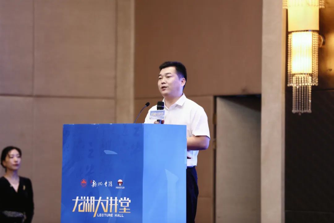 下午3點(diǎn),大講堂準(zhǔn)時(shí)開講,龍湖書院秘書長趙雨致開幕詞,闡述了龍湖書院“以文興人,以人興業(yè),以業(yè)興邦”的書院使命,以及書院的服務(wù)內(nèi)容和發(fā)展愿景,同時(shí)對(duì)大家的到來表示誠摯歡迎。我會(huì)副會(huì)長單位仰韶酒業(yè)黨委副書記、河南仰韶營銷有限公司總經(jīng)理郝惠鋒和茅五劍企業(yè)集團(tuán)總裁鄭偉鋒先后發(fā)表了熱情洋溢的致辭。
