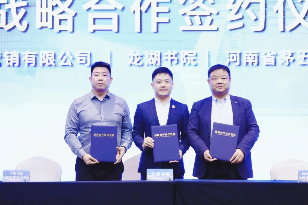 接下來,在眾位領(lǐng)導(dǎo)和嘉賓的見證下,隆重舉行了龍湖書院與河南仰韶營銷有限公司,河南省茅五劍貿(mào)易有限公司的戰(zhàn)略合作簽約儀式。