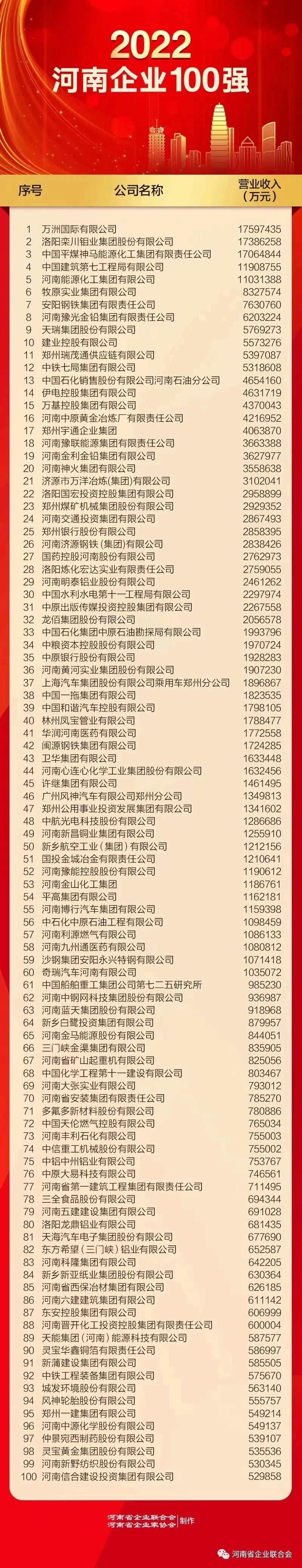 據(jù)悉,今年是河南省企業(yè)聯(lián)合會、河南省企業(yè)家協(xié)會在企業(yè)自愿申報的基礎(chǔ)上,按照國際通行方式,以企業(yè)營業(yè)收入為入圍標(biāo)準(zhǔn),連續(xù)第17年發(fā)布河南企業(yè)100強榜單。作為河南省經(jīng)濟運行的晴雨表、轉(zhuǎn)型發(fā)展的風(fēng)向標(biāo),今年的河南企業(yè)100強在做強做優(yōu)做大等方面展現(xiàn)出新的活力,取得了自2013年排序發(fā)布以來最好成績,呈現(xiàn)諸多新亮點。