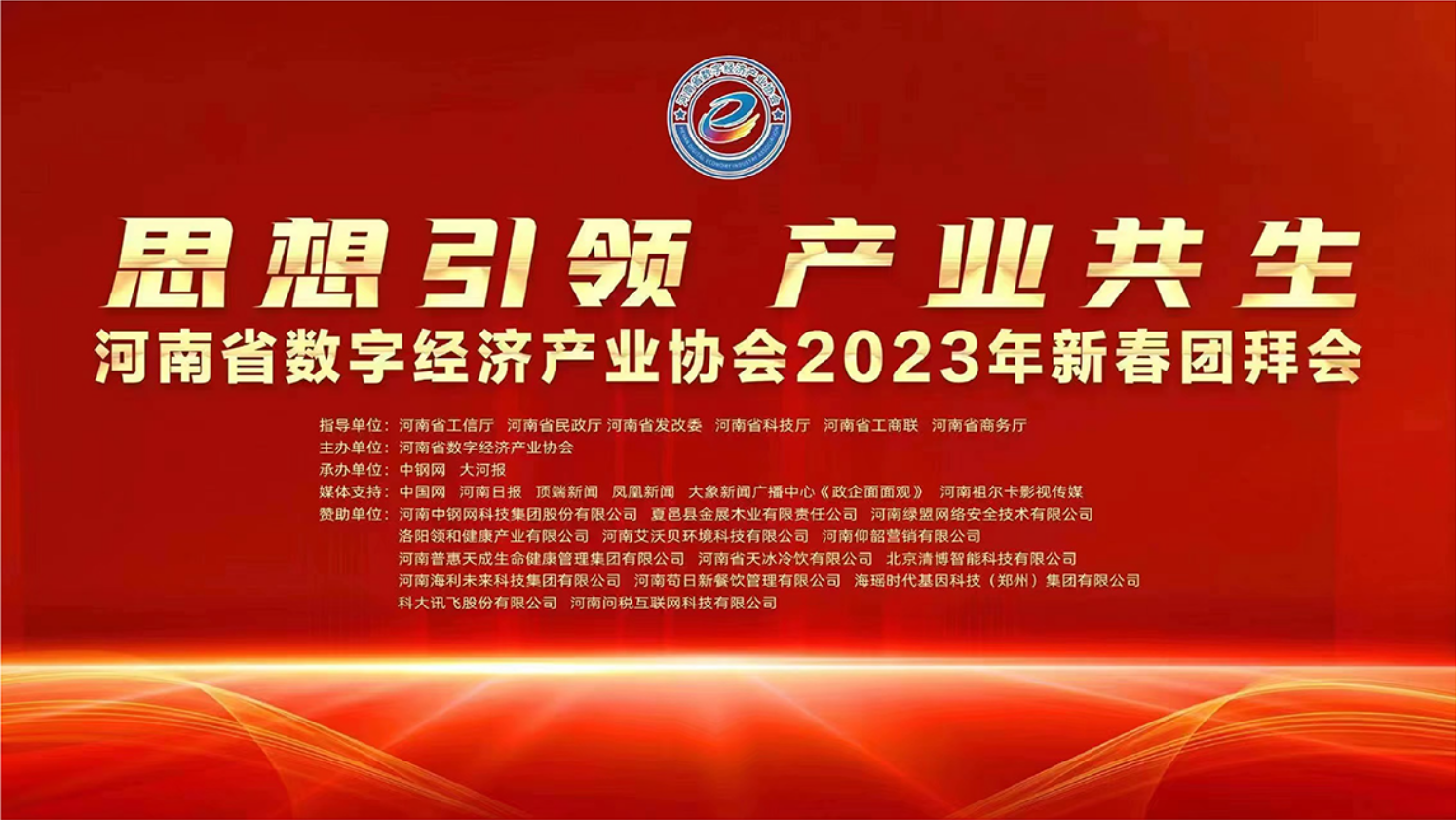 新時代,新征程。2023年1月12日下午,河南省數(shù)字經(jīng)濟產(chǎn)業(yè)協(xié)會在鄭州隆重舉行以“思想引領(lǐng) 產(chǎn)業(yè)共生”為主題的2023年新春團拜會。