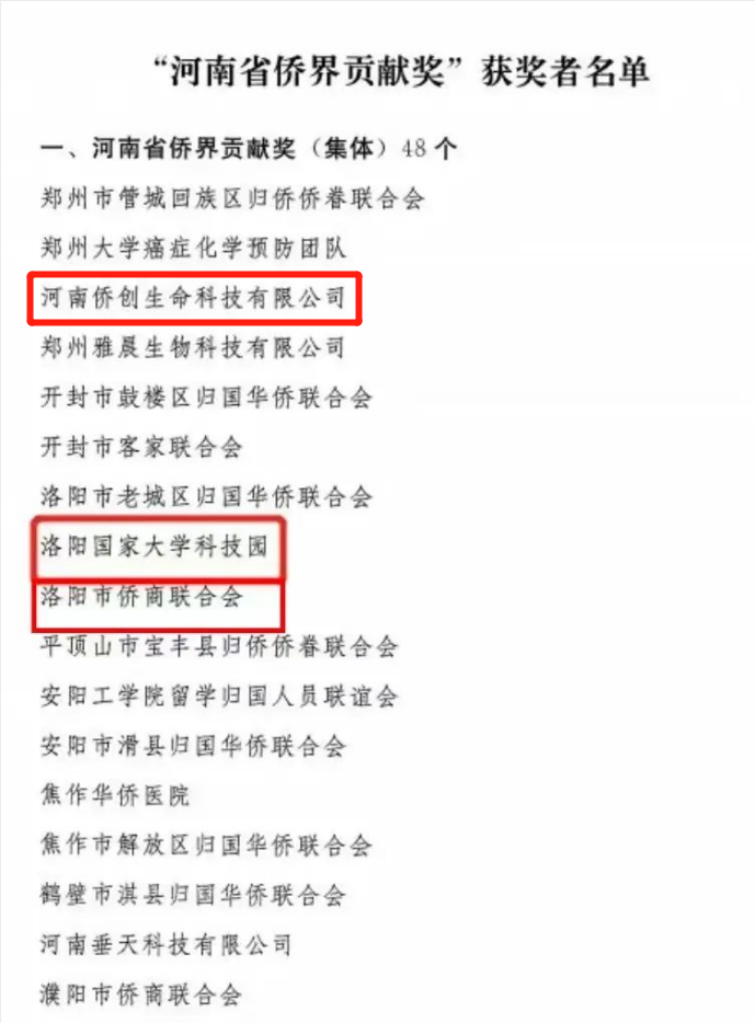 我會(huì)常務(wù)副會(huì)長(zhǎng)單位河南僑創(chuàng)生命科技有限公司喜獲“河南省僑界貢獻(xiàn)獎(jiǎng)”先進(jìn)集體榮譽(yù)。