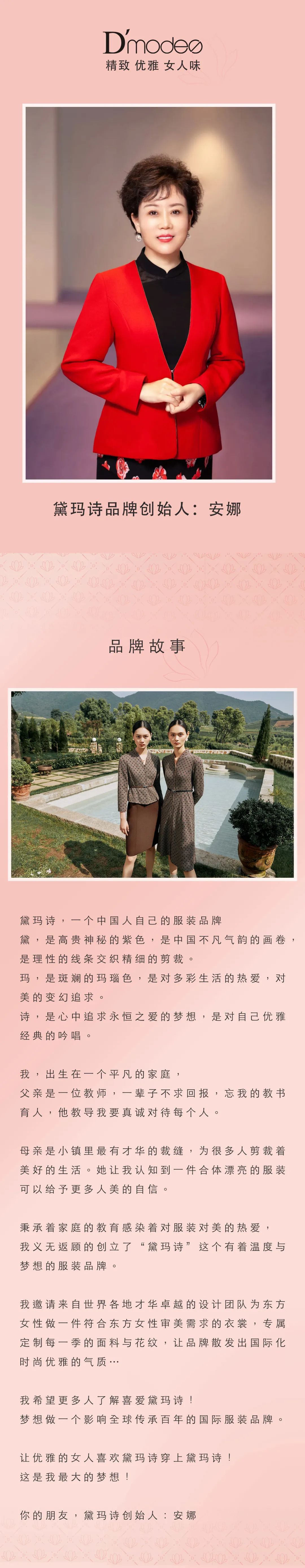 黛瑪詩時(shí)尚服裝有限公司是集研發(fā)、設(shè)計(jì)、生產(chǎn)、銷售于一體的多品牌零售商,旗下有D'modes, CHICHY, D'modes Link, Miss D'modes等品牌,總部位于鄭州黛瑪詩文化創(chuàng)意產(chǎn)業(yè)園,公司成員1000余人。公司在米蘭、首爾、深圳成立附屬材料研究所和產(chǎn)品研發(fā)工作室,擁有來自意大利、韓國(guó)、中國(guó)的頂尖優(yōu)秀設(shè)計(jì)團(tuán)隊(duì)。公司專注服裝行業(yè)產(chǎn)品研發(fā)革新,現(xiàn)取得各種專利37項(xiàng)。