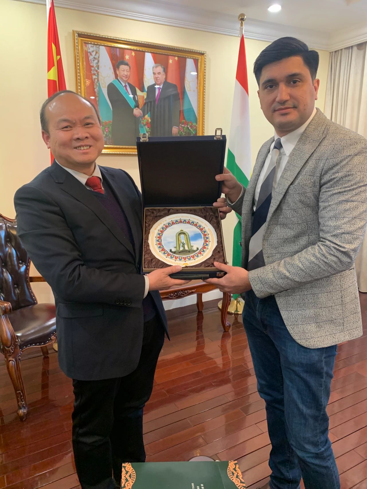 參觀期間,商務(wù)參贊菲魯茲先生贈送給仝奮飛董事長一套塔吉克斯坦共和國國禮。