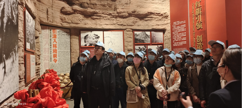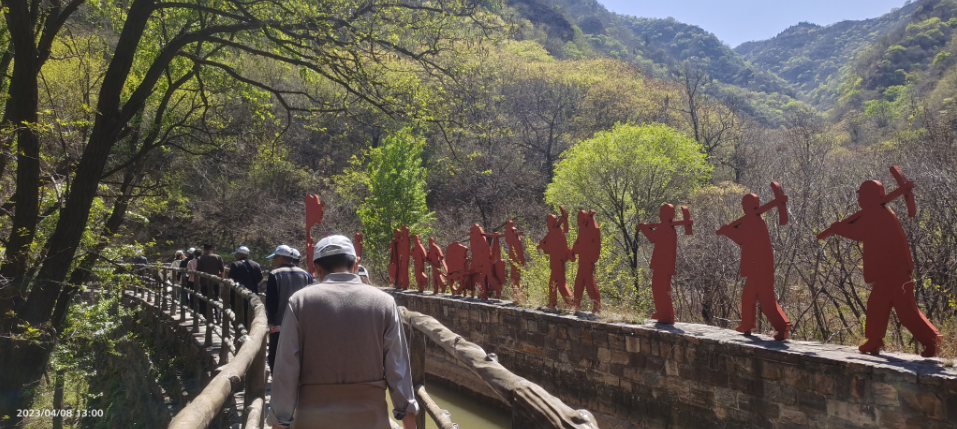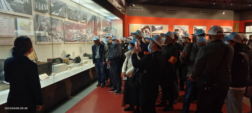 全體人員首先來到紅旗渠紀念館,通過講解員的講解,了解到當?shù)匦藿t旗渠的背景和“人工天河”名稱的來源。一幅幅珍貴的歷史照片,再現(xiàn)了當年勤勞勇敢的十萬林州人民,苦戰(zhàn)十個春秋,一錘一鎬,用雙手在懸崖峭壁的太行山上修造的1500公里的“世界第八大奇跡”。林州人民用勤勞的雙手結(jié)束了十年九旱、水貴如油的苦難歷史,創(chuàng)造了享譽全國的紅旗渠精神,激勵了一代又一代人。