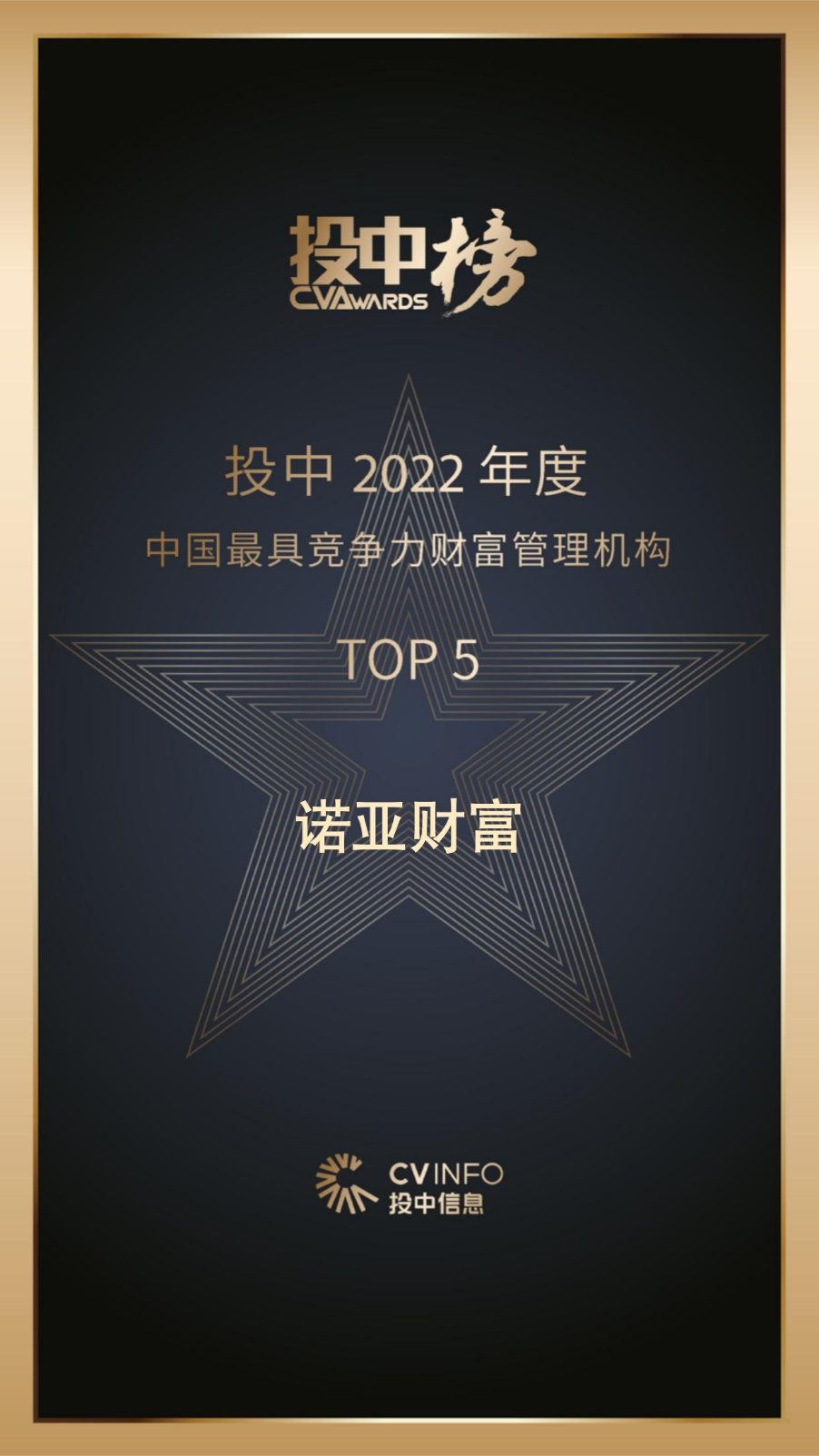 諾亞財(cái)富已連續(xù)五年榮獲投中榜“中國(guó)最具競(jìng)爭(zhēng)力財(cái)富管理機(jī)構(gòu)TOP5”榮譽(yù),充分證明了業(yè)內(nèi)權(quán)威平臺(tái)和機(jī)構(gòu)對(duì)諾亞財(cái)富的行業(yè)地位以及綜合實(shí)力的認(rèn)可。未來(lái),隨著中國(guó)財(cái)富管理行業(yè)的發(fā)展,客戶不斷提升的多元化資產(chǎn)配置需求,諾亞財(cái)富將繼續(xù)在組織建設(shè)、科技基礎(chǔ)、產(chǎn)品服務(wù)等方面持續(xù)投入,成為服務(wù)全球華人的財(cái)富管理公司。