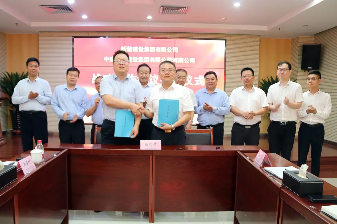 在與會(huì)領(lǐng)導(dǎo)的共同見(jiàn)證下,王浩、王建棋分別代表中建交通河南公司和新蒲建設(shè)集團(tuán)簽署戰(zhàn)略合作框架協(xié)議。