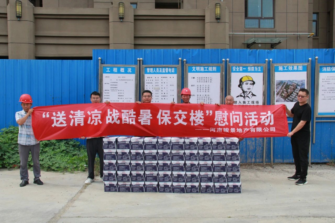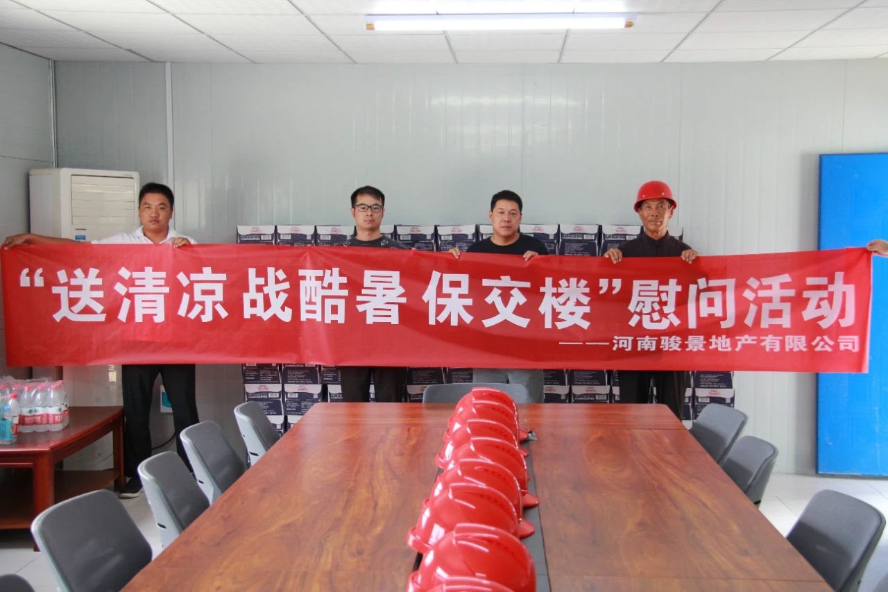 駿景地產(chǎn)送清涼活動(dòng),秉承了公司“以人為本、關(guān)愛職工、注重安全”的良好企業(yè)文化,一箱箱防暑降溫物品,是對(duì)高溫下勞動(dòng)者的尊重和敬意,也飽含著駿景地產(chǎn)的人文關(guān)懷,讓堅(jiān)守在烈日和高溫下的一線人員感受到公司的關(guān)心,以健康的身體和愉悅的心情投入到施工生產(chǎn)中,確保各項(xiàng)工作穩(wěn)步推進(jìn)。