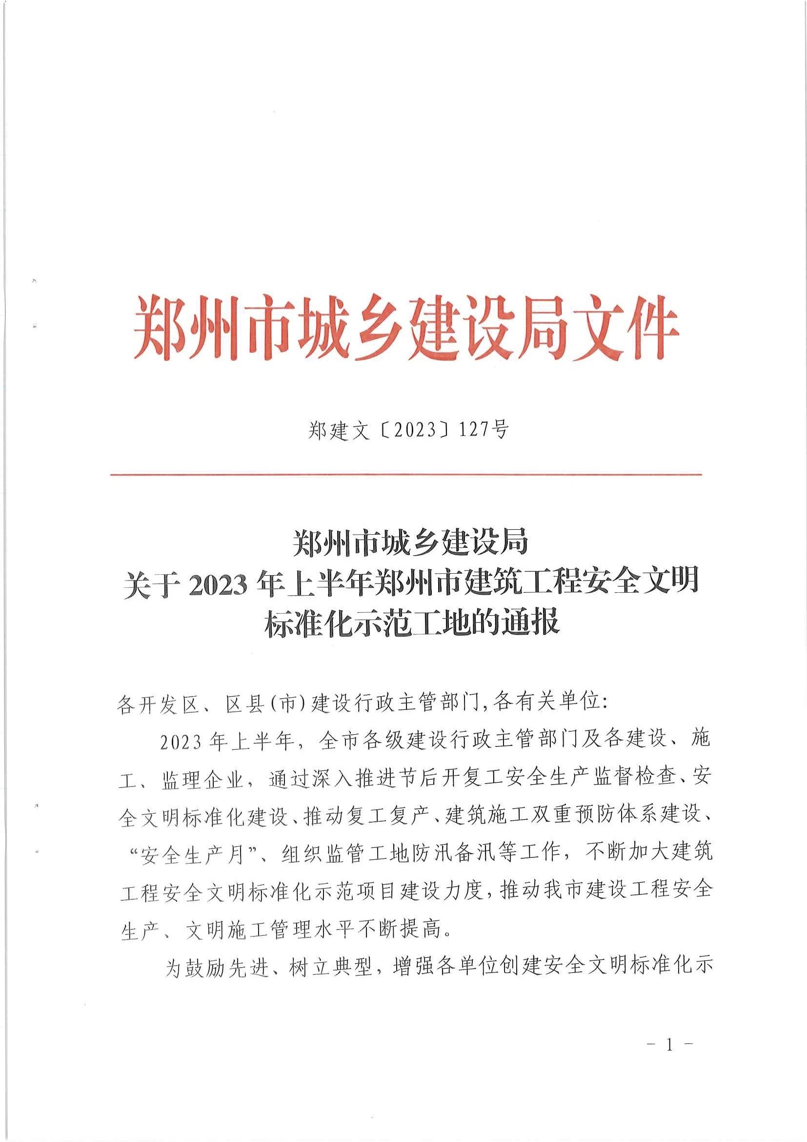 我會副會長單位世茂集團河南區(qū)域項目世茂云尚城薇海園(備案名:源升金鑼灣全福園)自開工建設(shè)以來,為深入推進安全生產(chǎn)標準化建設(shè),提升建筑施工本質(zhì)安全水平,在鄭州市建設(shè)主管部門領(lǐng)導(dǎo)的大力支持下,建設(shè)、施工、監(jiān)理單位眾志成城,竭盡全力,克服行業(yè)內(nèi)卷動蕩、場地狹小等重重困難,對安全防護、機械設(shè)備、現(xiàn)場消防、臨時用電、文明施工、治安保衛(wèi)、職工勞動保護用品、安全教育培訓、安全技術(shù)交底等多項安全管理工作的持續(xù)推進,通過傻瓜式、清單式、穿透式的管理思路,將現(xiàn)場安全文明工作落實到每一個人,并最終于2023年7月15日被評為2023年上半年鄭州市建筑工程安全文明標準化示范工地。