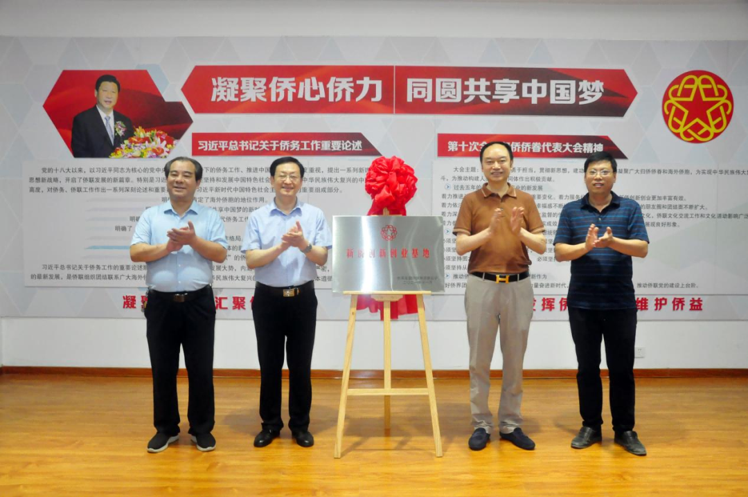 河南省僑聯(lián)黨組書記、主席楊海強,洛陽市僑聯(lián)黨組書記、主席華陽,洛龍區(qū)委副書記、統(tǒng)戰(zhàn)部部長胡貴生,中國僑聯(lián)委員、中國僑商聯(lián)合會副會長、我會團體會員洛陽市僑商聯(lián)合會會長、華人集團董事局主席、炎黃科技園董事長鄺遠平共同為中國僑聯(lián)新僑創(chuàng)新創(chuàng)業(yè)基地揭牌。