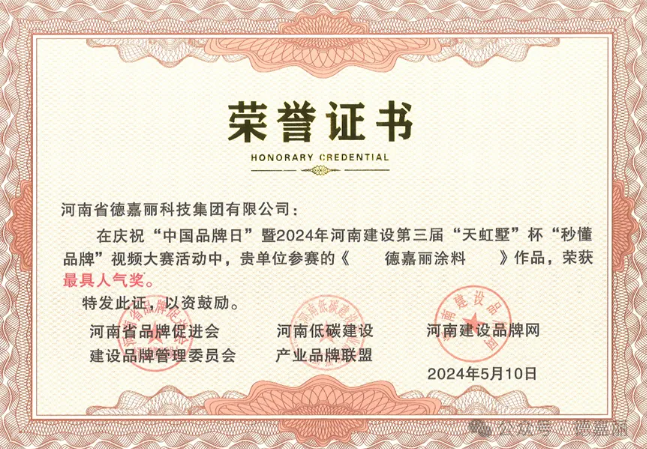 此外,德嘉麗“NBW內(nèi)置保溫體系”獲第三屆“天虹墅”杯“秒懂品牌”視頻大賽三等獎。以及德嘉麗涂料獲“最具人氣獎”,德嘉麗公司重點研發(fā)的“NBW建筑結(jié)構(gòu)保溫一體化體系”,被住建部評為國內(nèi)同行業(yè)領(lǐng)先、國際首創(chuàng)。普通混凝土澆筑,方便易操作;保溫板不位移、不變形;依圖紙設(shè)計,自動化生產(chǎn);保證保溫與建筑同壽命,防火性能達到A1級以上,是造福社會的好產(chǎn)品,完全摒棄了傳統(tǒng)保溫的弊病和缺陷。