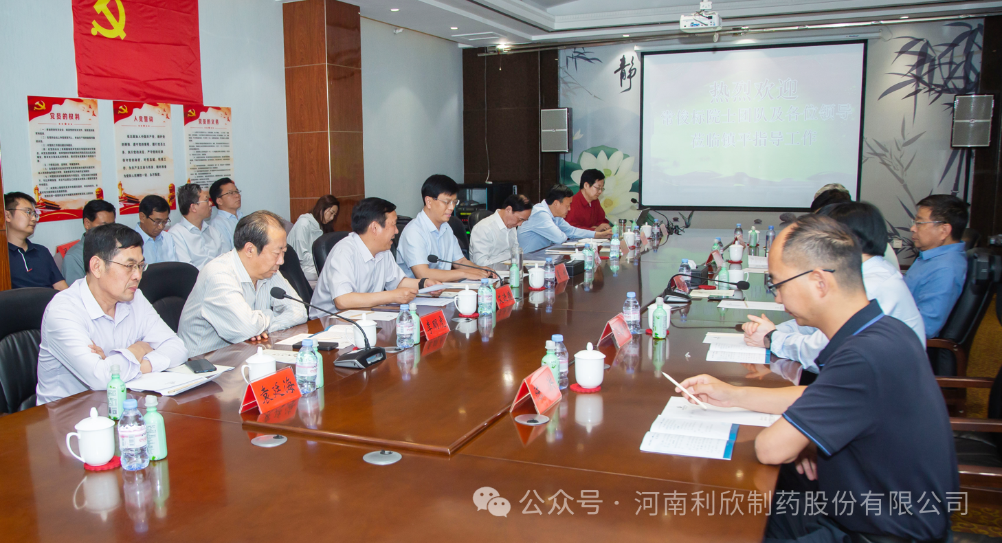 ??嗽菏繄F隊對我公司目前的主營業(yè)務,工藝技術研究,以及公司與科研機構、高校產學研合作、科技人才引進等進行了討論。其間,常俊標院士團隊對利欣制藥的工作給予了高度贊揚,對公司的科技創(chuàng)新引領,嚴格的操作標準表示了贊同。希望雙方以此次考察為契機,加強交流溝通,發(fā)揮各自優(yōu)勢,圍繞藥物創(chuàng)新等方面積極戰(zhàn)略溝通交流,以實際行動助力利欣制藥創(chuàng)新發(fā)展。