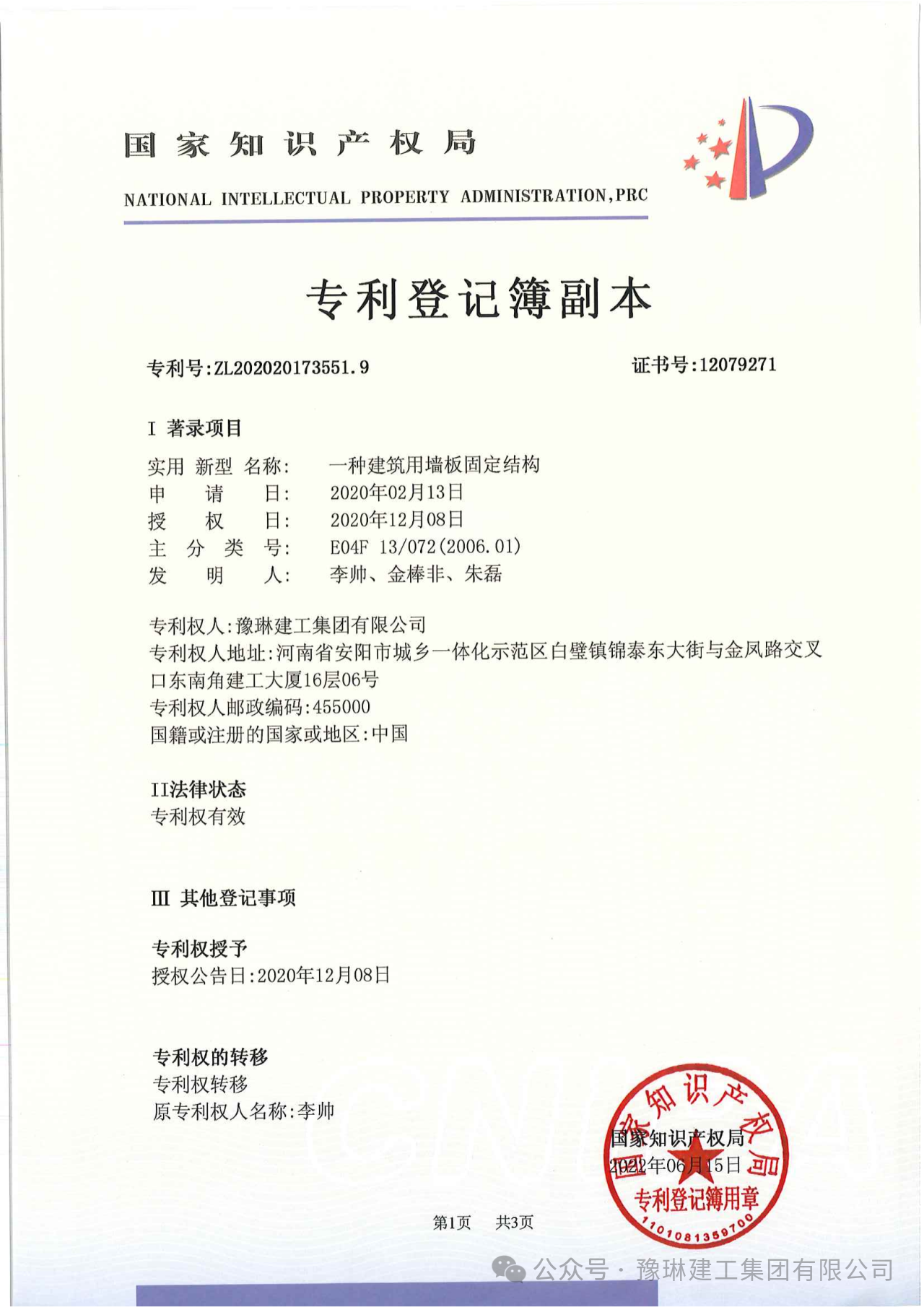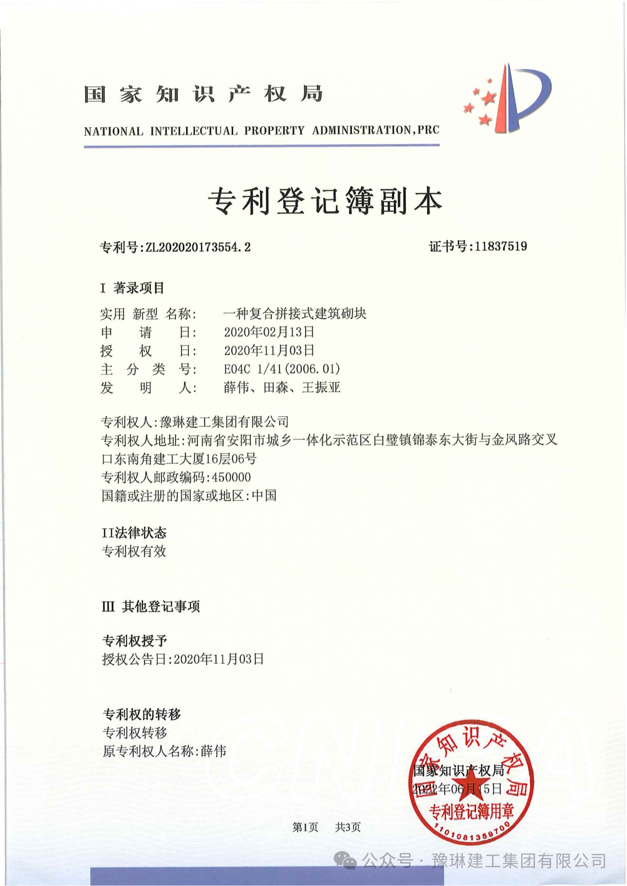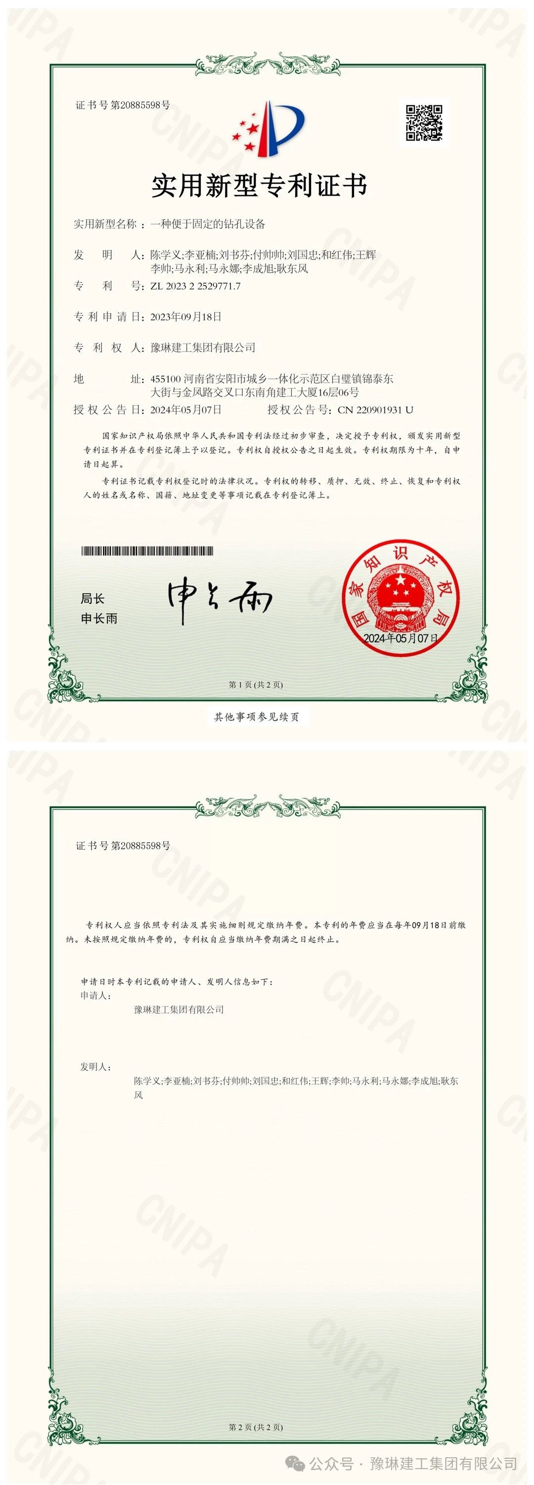 自成立以來,豫琳建工集團(tuán)一直致力于技術(shù)創(chuàng)新和專利申請。截至目前,我們已經(jīng)申請多項專利,這些專利的獲得不僅體現(xiàn)了我們公司在技術(shù)創(chuàng)新方面的實力和成果,也為我們公司的發(fā)展提供了堅實的保護(hù)。