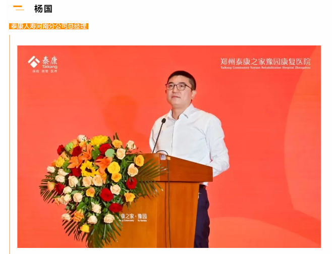泰康人壽河南分公司總經(jīng)理楊國在致辭時表示,豫園康復醫(yī)院的盛大開業(yè)進一步豐富了泰康保險集團在豫的大健康生態(tài),未來,支付端將堅定與服務端做好聯(lián)動,借助康復醫(yī)院多樣化的健康超體活動,為客戶提供更加優(yōu)質的健康管理服務。