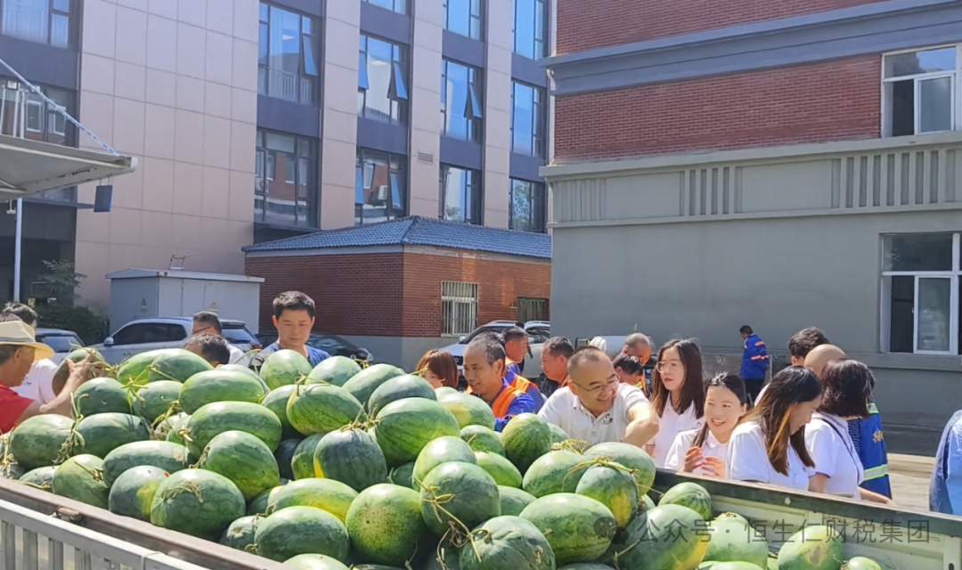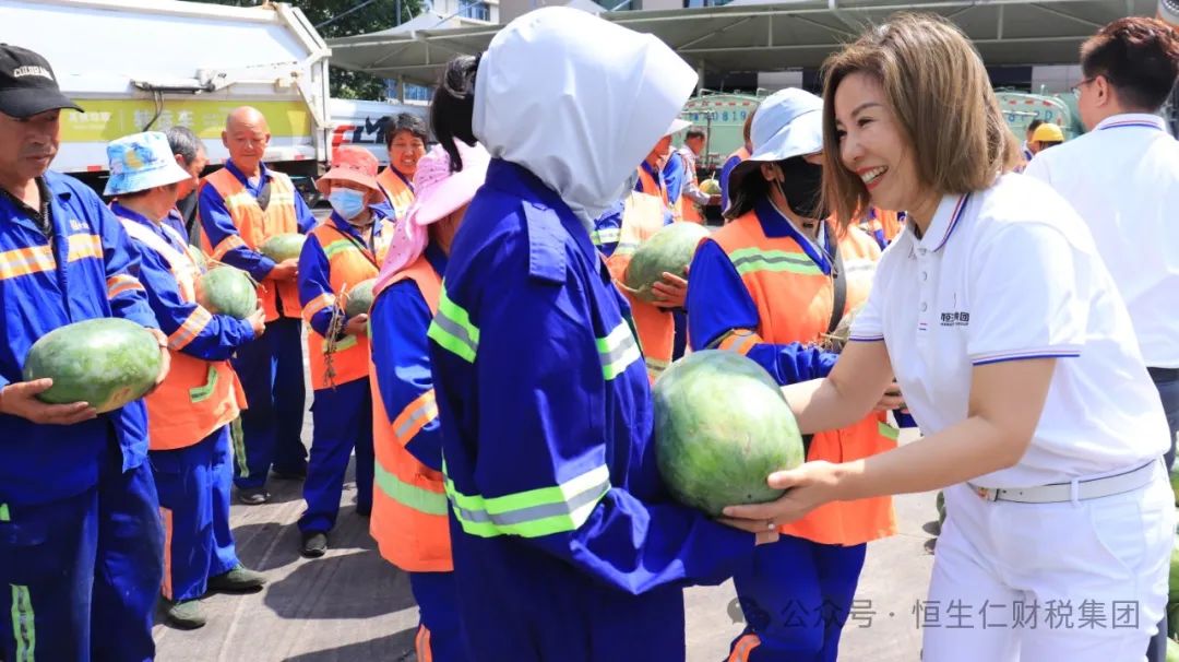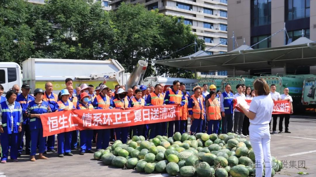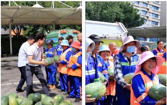 恒生仁“愛心公益團”化身“清涼使者”,為環(huán)衛(wèi)工人特別準備了自開封西瓜生產(chǎn)基地新鮮采摘的西瓜。