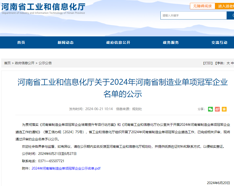 河南省制造業(yè)單項(xiàng)冠軍企業(yè),是指長(zhǎng)期專注于制造業(yè)某些細(xì)分市場(chǎng),堅(jiān)持專業(yè)化發(fā)展、市場(chǎng)份額領(lǐng)先、創(chuàng)新能力強(qiáng)、質(zhì)量效益高的企業(yè),代表了制造業(yè)細(xì)分領(lǐng)域中的最高發(fā)展水平和最強(qiáng)市場(chǎng)實(shí)力。因此,單項(xiàng)冠軍,被譽(yù)為制造業(yè)皇冠上的“明珠”、金字塔的塔尖。
