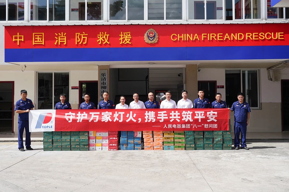 7月23日,驕陽(yáng)似火,熱浪滾滾。中國(guó)·人民電器集團(tuán)黨委第一書(shū)記吳壽喜率“八一”慰問(wèn)團(tuán),先后前往樂(lè)清市消防救援大隊(duì)、柳市消防救援站、柳市鎮(zhèn)政府專(zhuān)職消防隊(duì)和鎮(zhèn)預(yù)備役應(yīng)急分隊(duì)進(jìn)行慰問(wèn)。