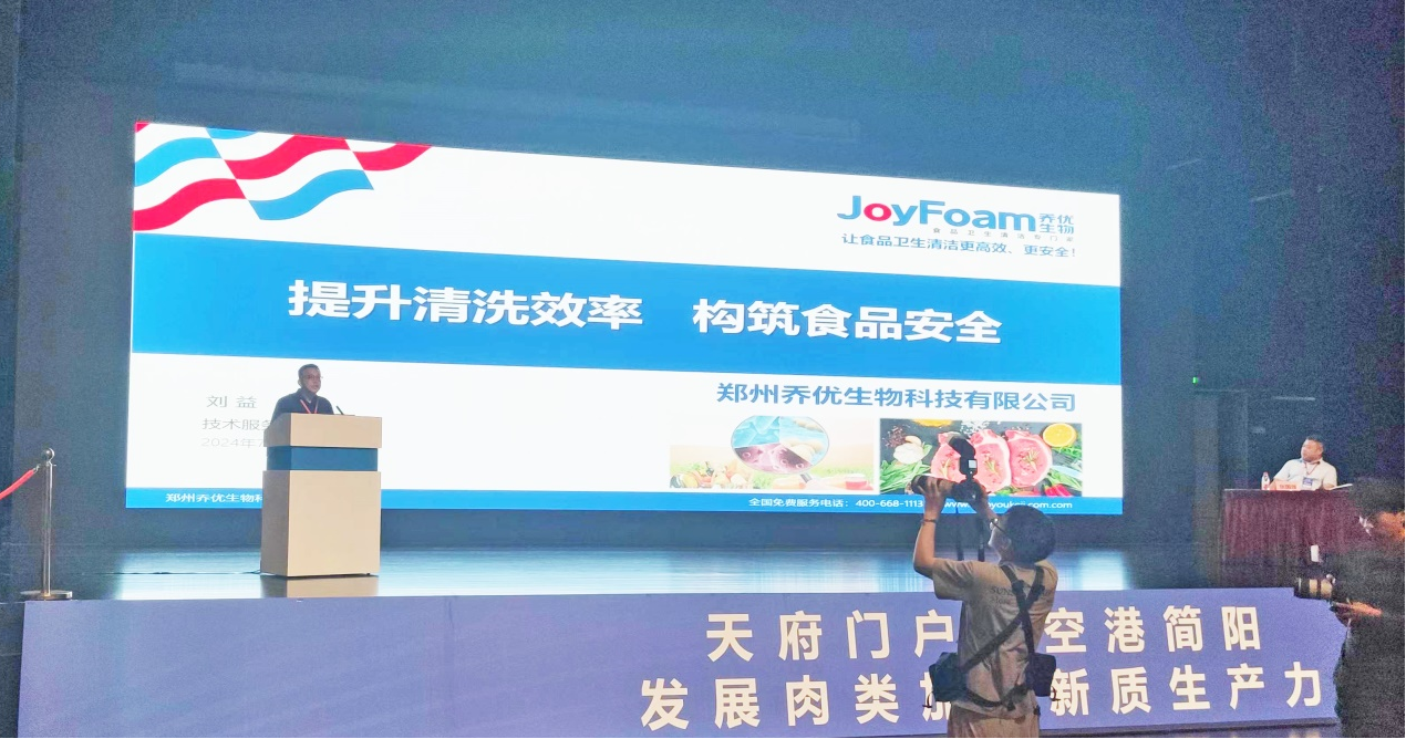 鄭州喬優(yōu)生物科技有限公司副總經(jīng)理劉益,在大會(huì)發(fā)表了《提升清洗效率,構(gòu)筑食品安全》的主題報(bào)告。報(bào)告分析了當(dāng)今食品加工行業(yè)的食品安全風(fēng)險(xiǎn)來源,其中由于清潔衛(wèi)生不到位引起的占比較大。傳統(tǒng)的清洗方式難以適應(yīng)現(xiàn)代化食品加工行業(yè)的需要,清洗效率低下是導(dǎo)致清潔衛(wèi)生問題的主要因素。