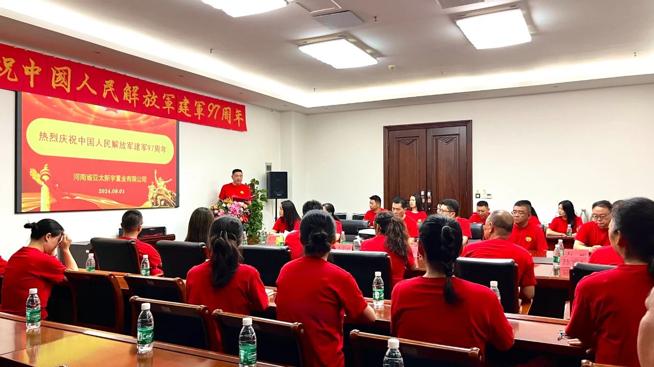 為慶祝中國人民解放軍建軍97周年,學習和傳承人民軍隊的優(yōu)良傳統和作風,積極弘揚愛國主義精神,激發(fā)員工的榮譽感和使命感,營造良好的團隊合作氛圍,加強團隊的凝聚力,樹立企業(yè)良好的社會責任形象,省僑商會副會長單位亞太公司特舉辦中國人民解放軍建軍97周年慶?;顒?。