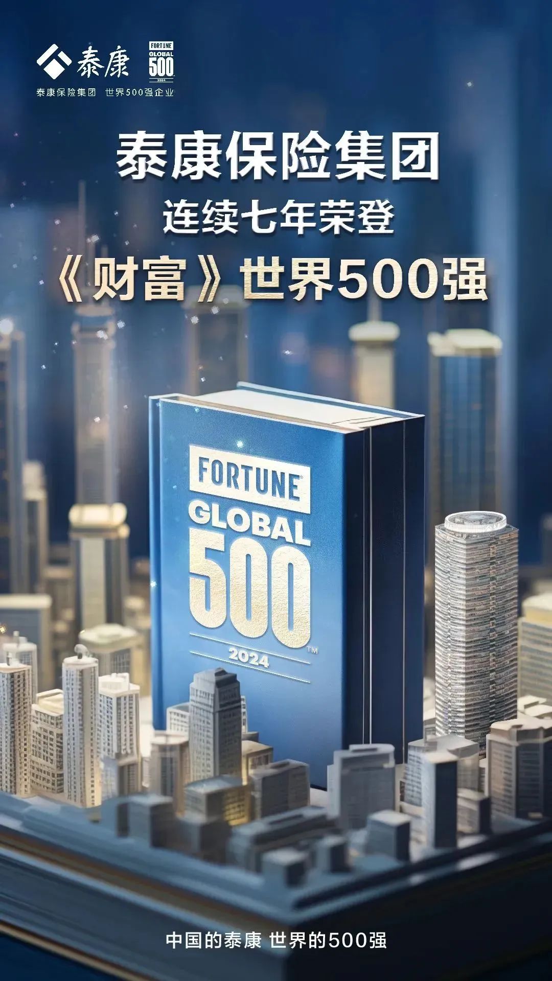 8月5日,2024年《財富》世界500強排行榜正式發(fā)布,省僑商會常務(wù)理事單位泰康保險集團以394.116億美元的營業(yè)收入位列榜單第381名,排名較上年提升50名,連續(xù)七年入圍《財富》世界500強。