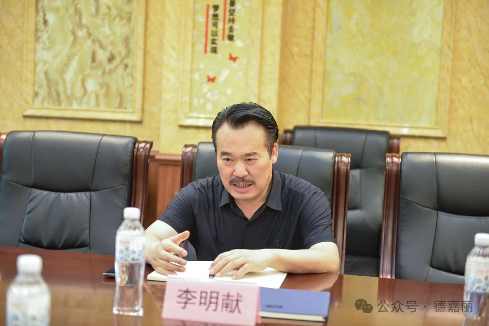 參觀結(jié)束后,雙方在德嘉麗集團(tuán)會(huì)議室進(jìn)行了深入的座談交流。會(huì)議期間,李明獻(xiàn)董事長(zhǎng)詳細(xì)介紹了公司的發(fā)展歷程、主營(yíng)業(yè)務(wù)、產(chǎn)品的技術(shù)特點(diǎn)、環(huán)保優(yōu)勢(shì)及市場(chǎng)應(yīng)用情況,并向領(lǐng)導(dǎo)們表達(dá)了未來(lái)尋求海外發(fā)展機(jī)會(huì)的規(guī)劃,得到了來(lái)訪領(lǐng)導(dǎo)們的高度認(rèn)可。