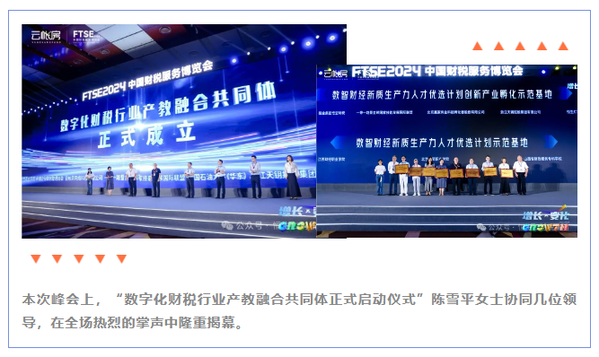 本次峰會上,“數(shù)字化財稅行業(yè)產(chǎn)教融合共同體正式啟動儀式”陳雪平女士協(xié)同幾位領(lǐng)導(dǎo),在全場熱烈的掌聲中隆重揭幕。