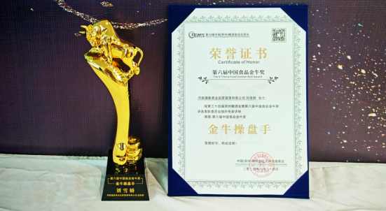 河南蒲象商業(yè)運(yùn)營(yíng)管理有限公司總經(jīng)理劉雪嬌 榮獲“金牛操盤手”榮譽(yù)