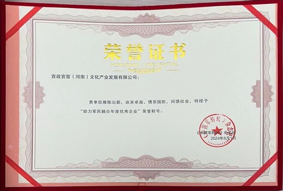 在這一盛會(huì)上,我會(huì)常務(wù)理事單位宣政官窯(河南)文化產(chǎn)業(yè)發(fā)展有限公司(以下簡(jiǎn)稱“宣政官窯”)憑借其對(duì)中國(guó)傳統(tǒng)文化的卓越貢獻(xiàn)和對(duì)國(guó)防、經(jīng)濟(jì)建設(shè)的持續(xù)支持,榮獲《中國(guó)軍轉(zhuǎn)民》雜志社頒發(fā)的“助力軍民融合年度優(yōu)秀企業(yè)”榮譽(yù)稱號(hào),公司創(chuàng)始人、非物質(zhì)文化遺產(chǎn)(鈞瓷)燒制技藝代表性傳承人劉明臣代表公司登臺(tái)領(lǐng)獎(jiǎng)。