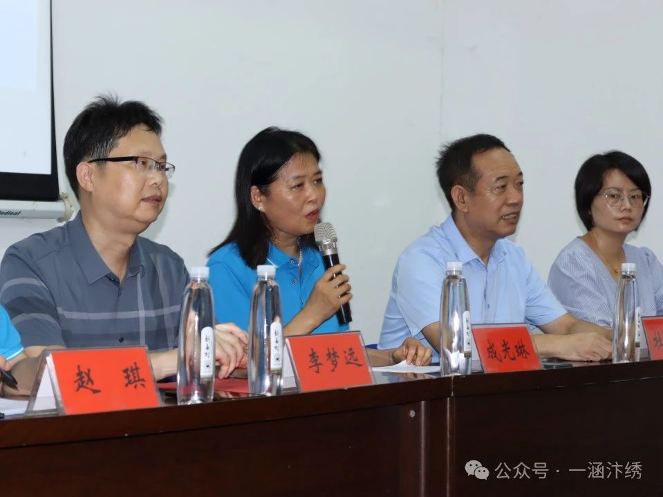河南經(jīng)貿(mào)職業(yè)學(xué)院校長成光琳、明港鎮(zhèn)人大主席李夢遠(yuǎn)、鄭州市文化與旅游局處長杜大生、明港鎮(zhèn)文化館館長張靜、清淮村支部書記李傳斌、河南經(jīng)貿(mào)職業(yè)學(xué)院文化教育學(xué)院院長段秋月、中國婦女十三大代表、河南一涵汴繡有限公司董事長張留鳳,以及全體參與的老師、學(xué)生、清淮村鄉(xiāng)親、繡娘等?;顒佑珊幽辖?jīng)貿(mào)職業(yè)學(xué)院繼續(xù)教育學(xué)院院長趙琪主持。