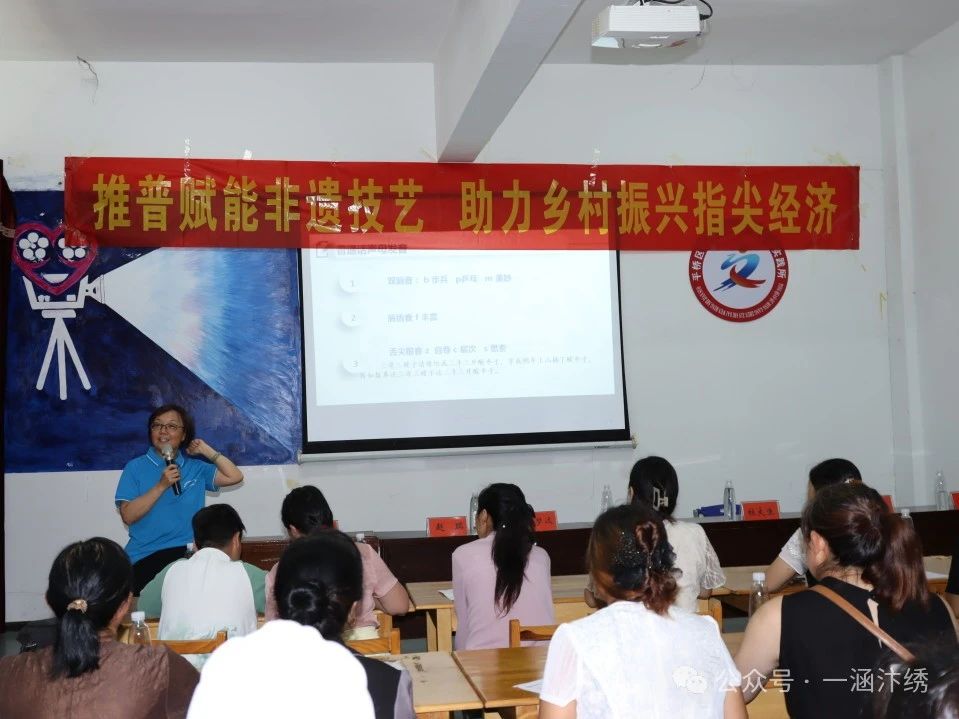 為推廣普及國家通用語言文字,服務(wù)鑄牢中華民族共同體意識,推進(jìn)鄉(xiāng)村振興事業(yè)發(fā)展。8月26日,省僑商會理事單位一涵汴繡攜手河南經(jīng)貿(mào)職業(yè)學(xué)院在信陽市明港鎮(zhèn)清淮村開展“推普賦能非遺技藝 助力鄉(xiāng)村指尖經(jīng)濟(jì)”為主題的社會實(shí)踐活動。