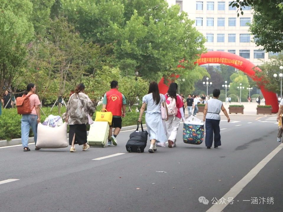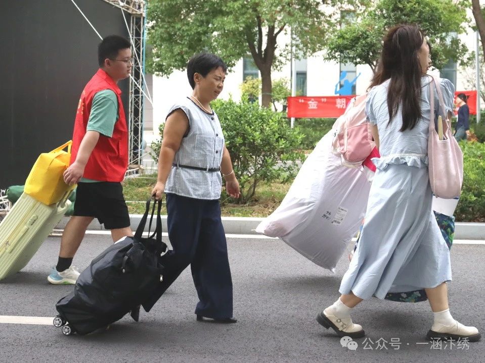 校園內(nèi),彩旗飄飄,迎新橫幅鮮艷奪目。刺繡產(chǎn)業(yè)學(xué)院的迎新志愿者們身著統(tǒng)一服裝,精神抖擻地忙碌著。他們?cè)谛@門(mén)口熱情迎接每一位新生和家長(zhǎng),主動(dòng)幫忙搬運(yùn)行李,并引導(dǎo)他們前往報(bào)到地點(diǎn)。