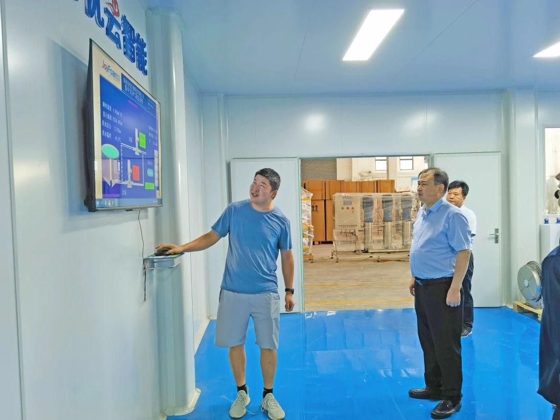 甘主席參觀了產(chǎn)品展覽體驗(yàn)中心,對(duì)各種設(shè)備、產(chǎn)品的功能和使用方法進(jìn)行了了解,對(duì)“喬優(yōu)云智能”物聯(lián)網(wǎng)系統(tǒng)給予了肯定。參觀過程中甘主席對(duì)喬優(yōu)公司取得的成績表示了贊許,并指出喬優(yōu)公司作為“漯河市新僑創(chuàng)業(yè)示范單位”起到了很好的示范作用,對(duì)公司下一步的發(fā)展提出了更高的要求,提高食品行業(yè)衛(wèi)生清潔的自動(dòng)化、智能化,為漯河市的企業(yè)增光添彩。