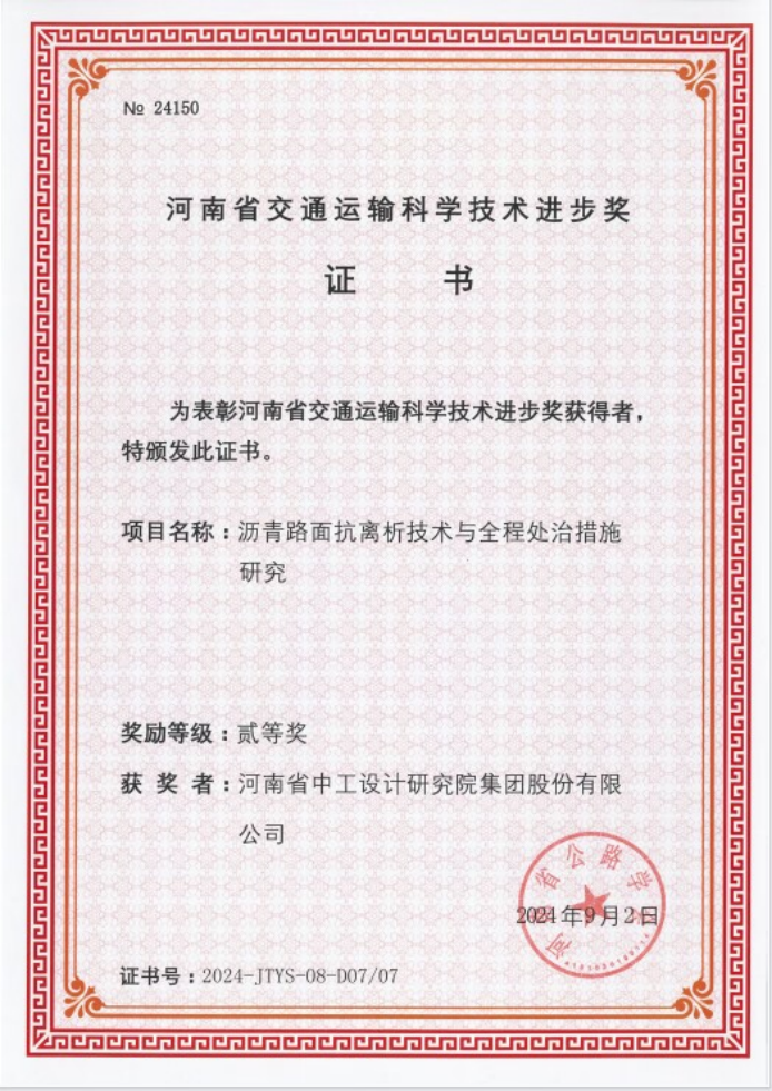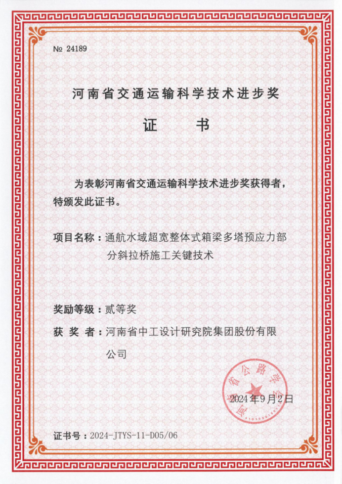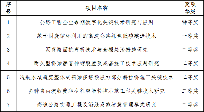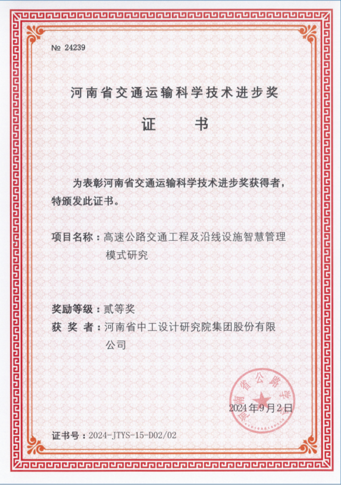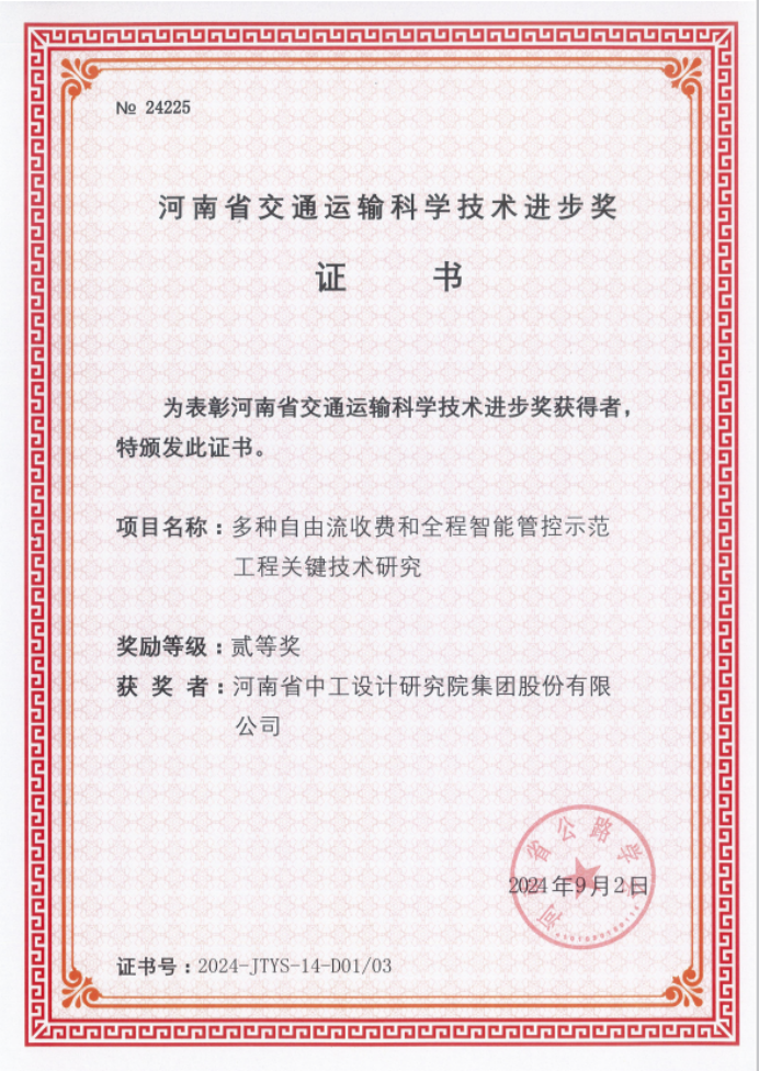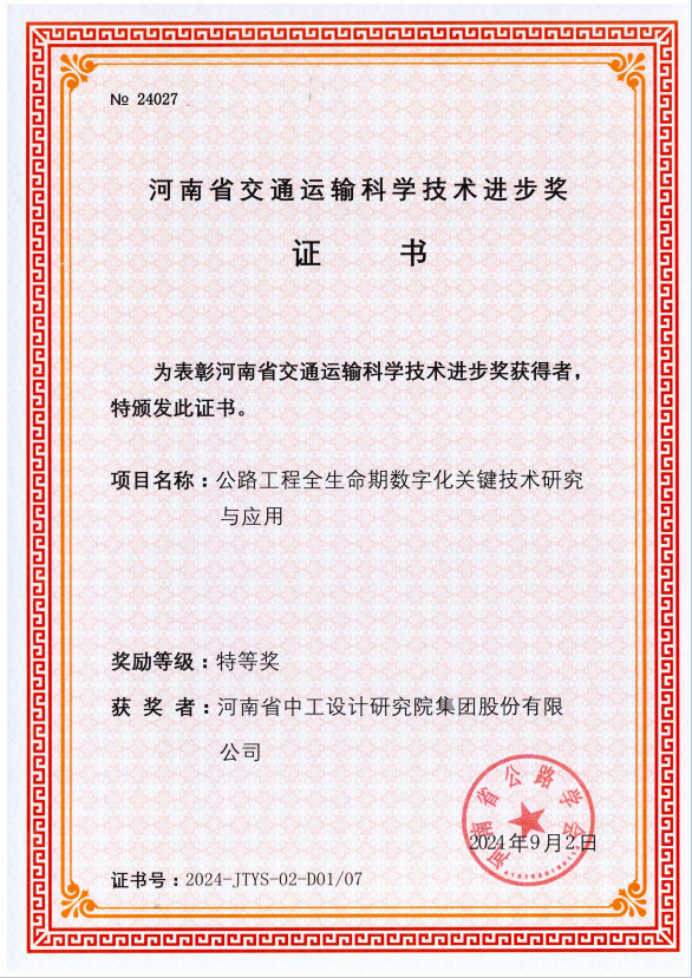 近日,河南省公路學(xué)會(huì)發(fā)布了《關(guān)于公布“2024年度河南省交通運(yùn)輸科技進(jìn)步獎(jiǎng)”獲獎(jiǎng)項(xiàng)目及人員的通知》(豫公學(xué)[2024]29號(hào)),我會(huì)常務(wù)副會(huì)長(zhǎng)單位河南中工設(shè)計(jì)研究院承擔(dān)的7項(xiàng)科研項(xiàng)目獲此獎(jiǎng)項(xiàng),其中特等獎(jiǎng)1項(xiàng)、一等獎(jiǎng)1項(xiàng),二等獎(jiǎng)5項(xiàng)。