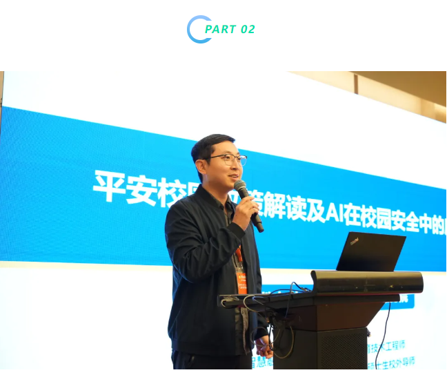 深圳市鹽田區(qū)教育科學研究院智慧融合部部長、深圳教育學會教育信息化與人工智能專委會常務理事馬瑞受邀參加本次論壇,并做《平安校園政策解讀及AI在校園安全中的應用》主題報告。馬瑞首先對《中小學、幼兒園安全防范要求》的核心要點進行了解讀,同時結合深圳鹽田區(qū)教育局平安校園建設思路和經驗,深入校園細分場景闡述了AI如何賦能校園安全應用,為現場與會嘉賓帶來了深度啟發(fā)。