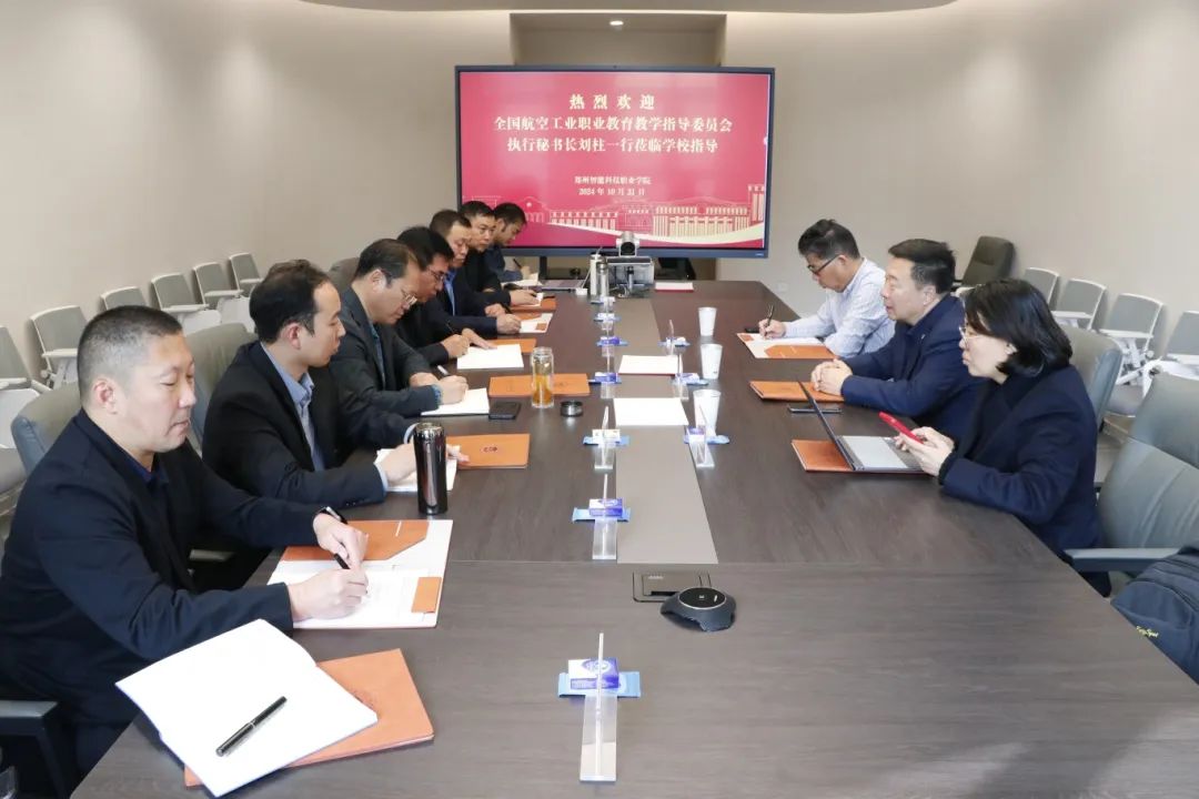劉柱圍繞全國航空工業(yè)職業(yè)教育教學(xué)指導(dǎo)委員會(huì)、中國航空教育學(xué)會(huì)的發(fā)展歷程、取得的成績及高校航空類項(xiàng)目、校企合作等方面作了簡要介紹。他希望與學(xué)校加強(qiáng)交流合作,搭建合作平臺(tái),推動(dòng)共同發(fā)展。隨后,高潔簡要介紹了航空行指委、中國航空教育學(xué)會(huì)和飛機(jī)維修大賽的相關(guān)情況。
