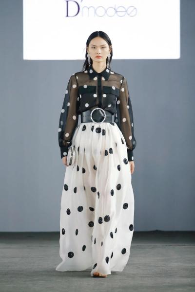 來自河南的自創(chuàng)女裝品牌D’modes和CHICHY受邀亮相。黛瑪詩主品牌以還原西班牙宮廷名媛風為設(shè)計理念,主打黑白色調(diào)、波點元素,蘊含時尚輪回的概念。
