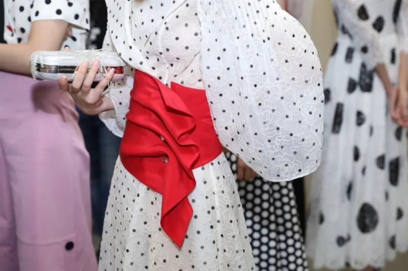 D’modes和CHICHY一同打造了一個精致優(yōu)雅、輕松自如的秀場。波點向來是亙古不變的春夏必備,D’modes在本季運用了大量的波點元素。紅黑撞色波點內(nèi)襯不經(jīng)意間從經(jīng)典款風衣下擺露出來,增加了一份氣場加成。