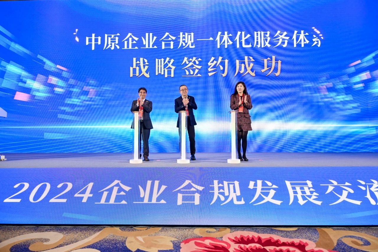 活動現(xiàn)場,中原司法科技創(chuàng)新中心、中誠信中原基地揭牌亮相,中原企業(yè)合規(guī)一體化服務(wù)體系現(xiàn)場舉行戰(zhàn)略簽約,中原司法科技創(chuàng)新中心戰(zhàn)略合作伙伴也進(jìn)行現(xiàn)場簽約。