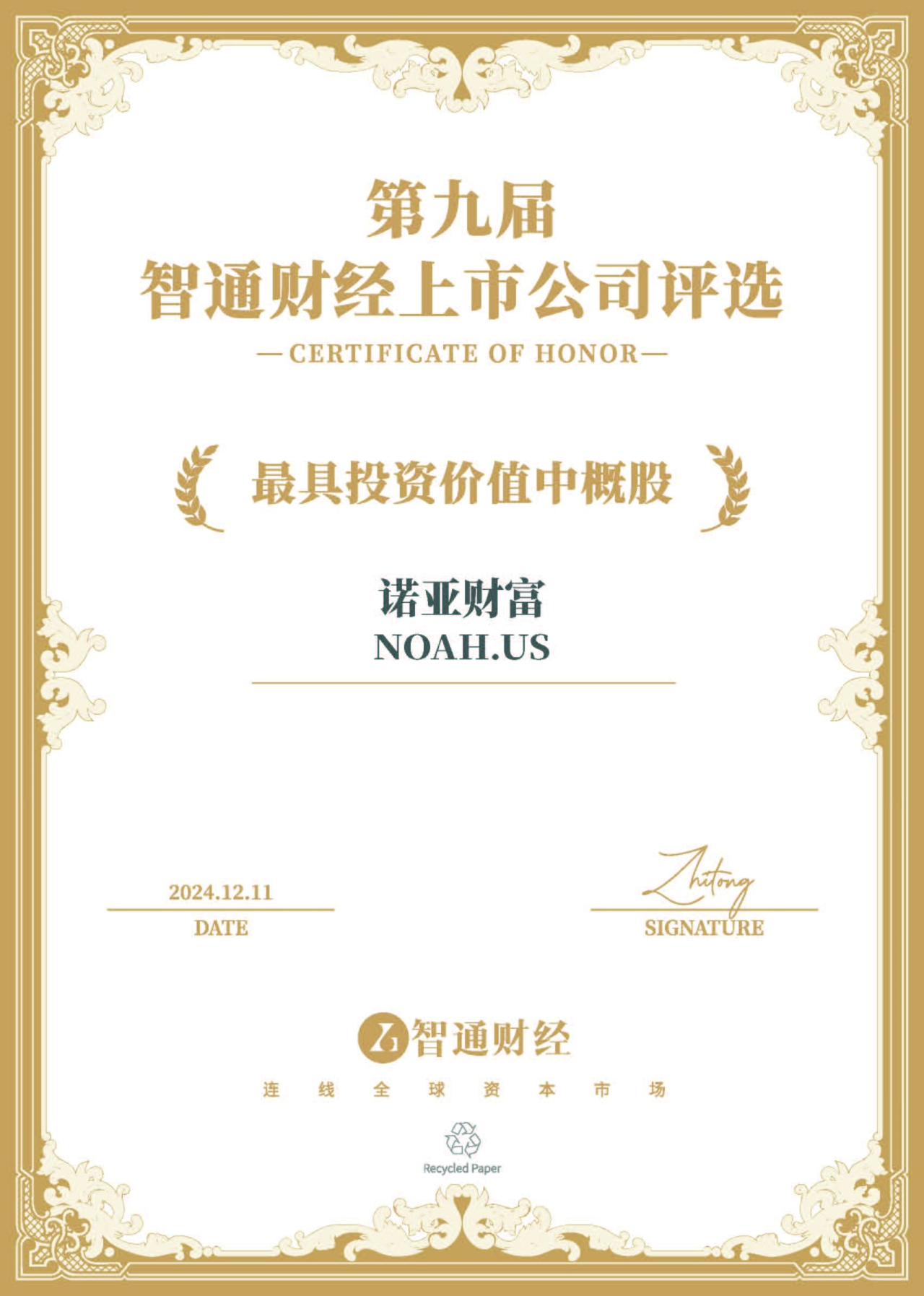 2024年12月11日,省僑商會(huì)副會(huì)長單位諾亞財(cái)富(NOAH.US)在備受矚目的“第九屆智通財(cái)經(jīng)資本市場年會(huì)暨上市公司頒獎(jiǎng)典禮”上榮獲“最具投資價(jià)值中概股”。這一盛會(huì)由國內(nèi)領(lǐng)先的港美股資訊平臺智通財(cái)經(jīng)與中資海外私募基金一站式服務(wù)平臺新智基金網(wǎng)聯(lián)合主辦,并由財(cái)經(jīng)公關(guān)綜合服務(wù)提供商冬日暖陽Donova獨(dú)家承辦,同時(shí)得到了專業(yè)財(cái)經(jīng)路演直播平臺“大路演”提供的路演支持。