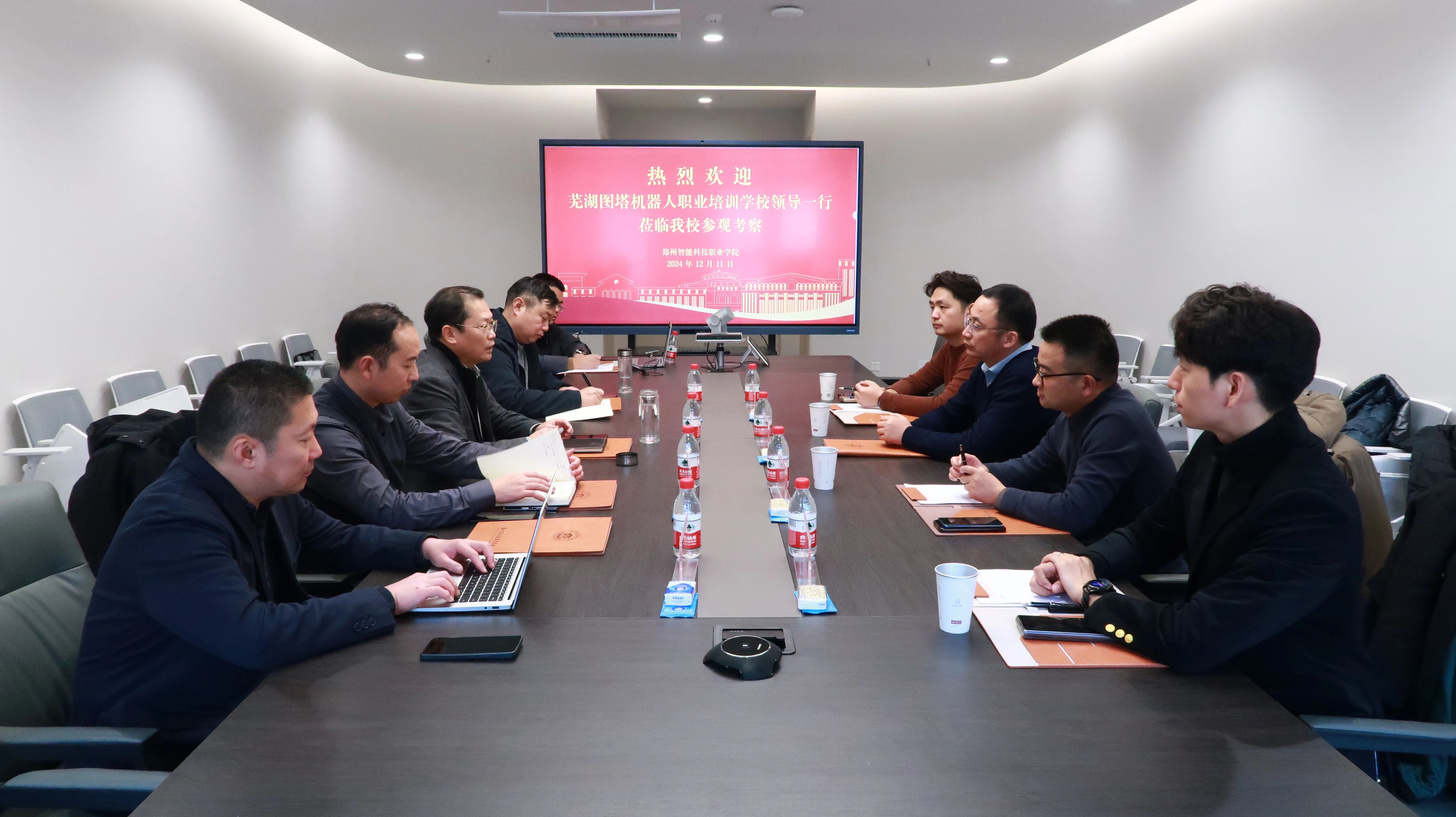 近日,安徽圖塔機器人有限公司總經(jīng)理易建軍,蕪湖圖塔機器人職業(yè)培訓學校校長李偉、副校長秦晏嶼到鄭州智能科技職業(yè)學院考察交流。省僑商會駐會執(zhí)行會長、學校校長王廣國,副校長韓萬兵及相關部門負責人參加交流座談。