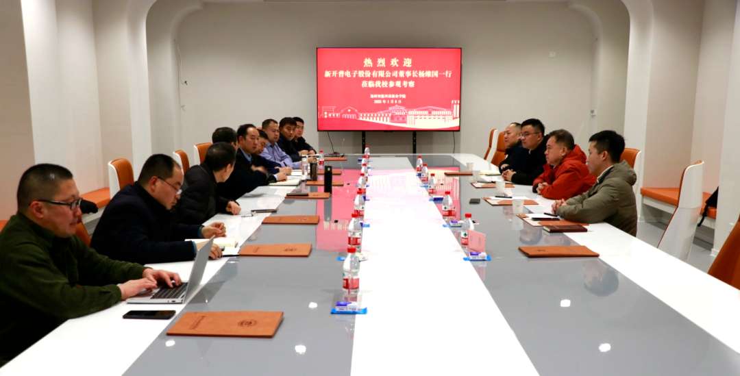 1月8日,新開(kāi)普董事長(zhǎng)楊維國(guó)一行到我??疾旖涣?,省僑商會(huì)駐會(huì)執(zhí)行會(huì)長(zhǎng)、學(xué)校校長(zhǎng)王廣國(guó),副校長(zhǎng)韓萬(wàn)兵和黨政校辦公室、校企合作處、人工智能學(xué)院等相關(guān)部門(mén)負(fù)責(zé)人參加交流座談會(huì)。
