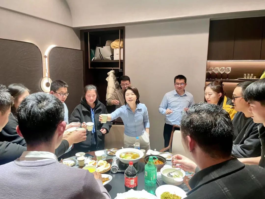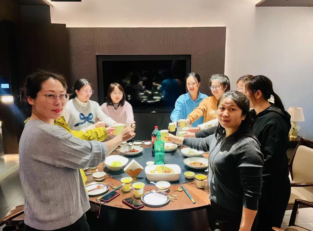 徒步結束后,公司安排了豐盛的團隊聚餐。餐桌上的氛圍輕松愉快,大家圍坐在一起,分享著一路上的趣事,聊開心的話題,笑聲此起彼伏。