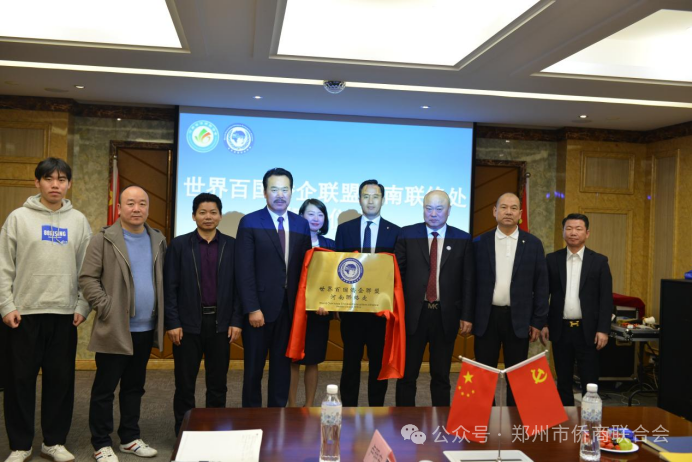 3月29日,在"一帶一路"倡議提出十周年之際,全球華僑企業(yè)合作網(wǎng)絡(luò)再添重要樞紐。世界百國僑企聯(lián)盟(以下簡(jiǎn)稱"百國聯(lián)盟")河南聯(lián)絡(luò)處落戶我會(huì)執(zhí)行會(huì)長單位河南省德嘉麗科技集團(tuán),標(biāo)志著中原僑企深度融入國際合作邁出關(guān)鍵一步。百國聯(lián)盟副主席曲波、白東勛、張多杰現(xiàn)場(chǎng)授牌,河南省僑商聯(lián)合會(huì)執(zhí)行會(huì)長、鄭州市僑商聯(lián)合會(huì)會(huì)長、德嘉麗集團(tuán)董事長李明獻(xiàn)欣然接收授牌。河南省歸國華僑聯(lián)合會(huì)黨組成員、副主席呂劍,鄭州市僑聯(lián)黨組書記、主席時(shí)旭見證揭牌儀式。